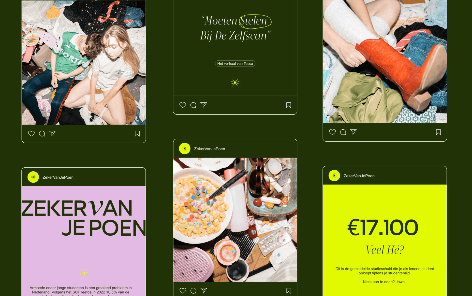 Als fotografe & brand designer ben ik diep ingegaan op de financiële uitdagingen van studenten, wat heeft geleid tot de oprichting van Zekervanjepoen.nl - een campagne met een online platform dat online en offline combineert om bewustwording te creëren.